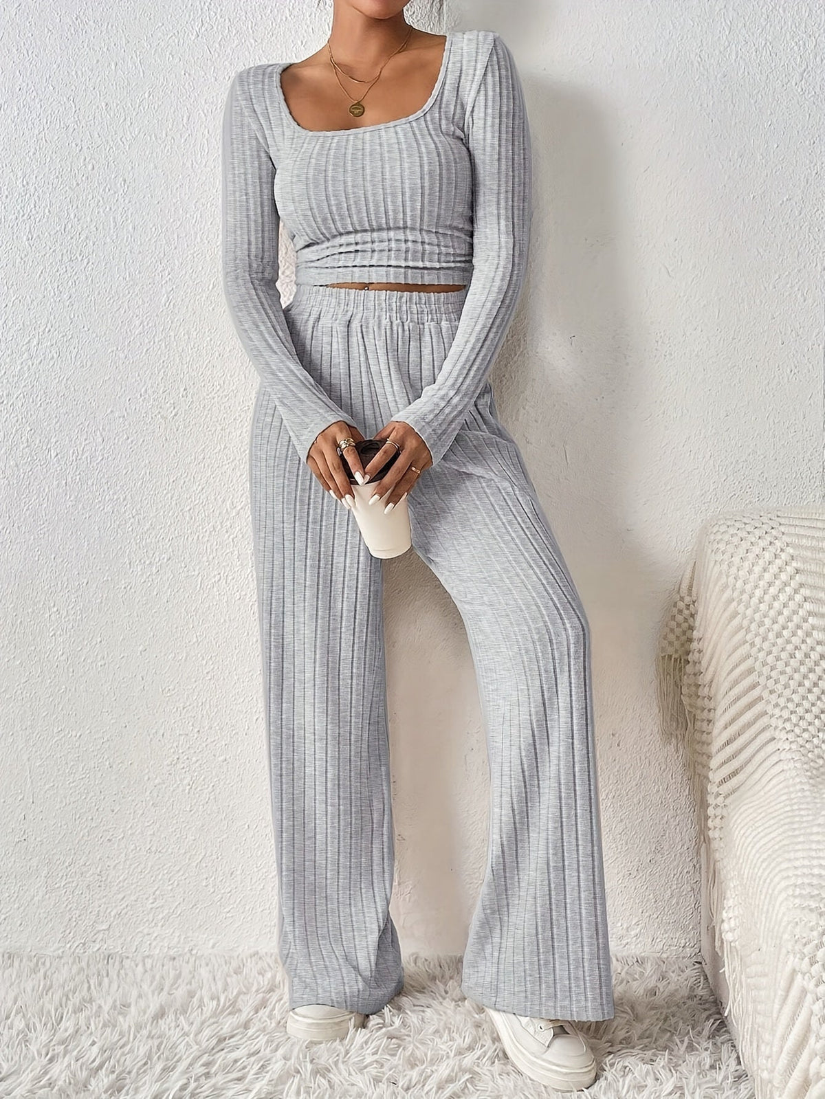 Ein elegantes Ensemble für stilbewusste Frauen. Das Rosenbaum. Angelika™ Set kombiniert ein langärmliges Crop-Top mit einer weiten Hose – ideal für elegante Auftritte in der Herbst- und Wintersaison.